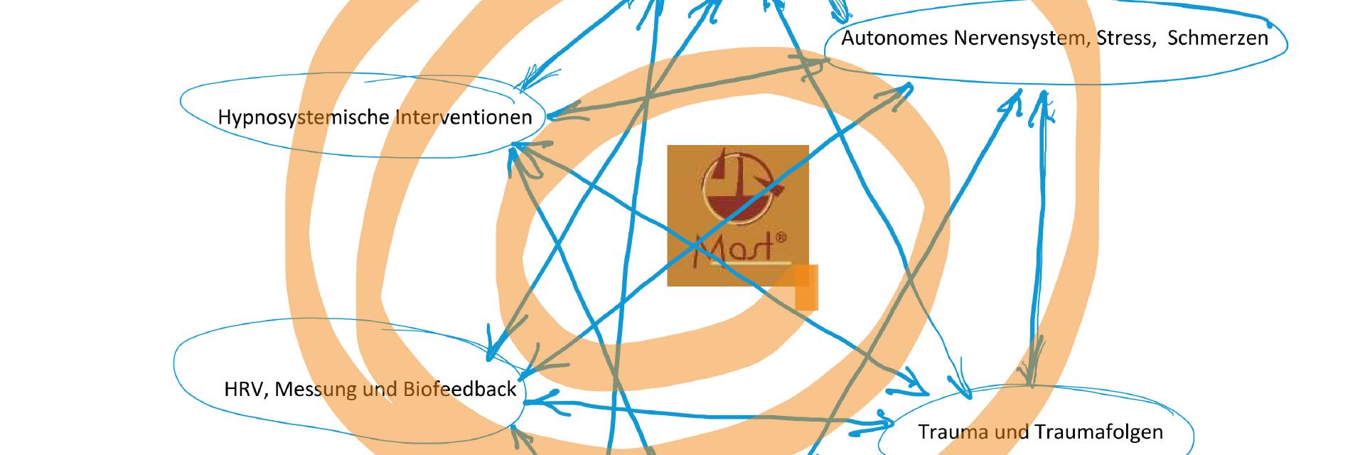 Es wird immer darum gehen, bei der Kommunikation die Sprachen von Kognition/Verstand mit der von den unterschiedlichen neurologischen Prinzipien des Gehirns abzugleichen und zu kombinieren. Unter Anderem wird dabei auch eine Kommunikation zwischen den Arealen des Reptilienhirns (Stammhirn, Überlebensfunktionen), des Emotionalen Hirns (auch Säugetierhirn genannt, u.a. Limbisches System) und dem Frontalen Neokortex (u.a. Sitz des Verstandes) möglichst bewusst angestrebt. Diese Ausführungen verweisen folgerichtig auf die Themen Stressverarbeitung, Autonomes Nervensystem, Chronischer Schmerz, Trauma bzw. die Interventionsmöglichkeiten HRV-Biofeedback, Innere Achtsamkeit und Embodiment und den Hypnosystemischen Ansatz.